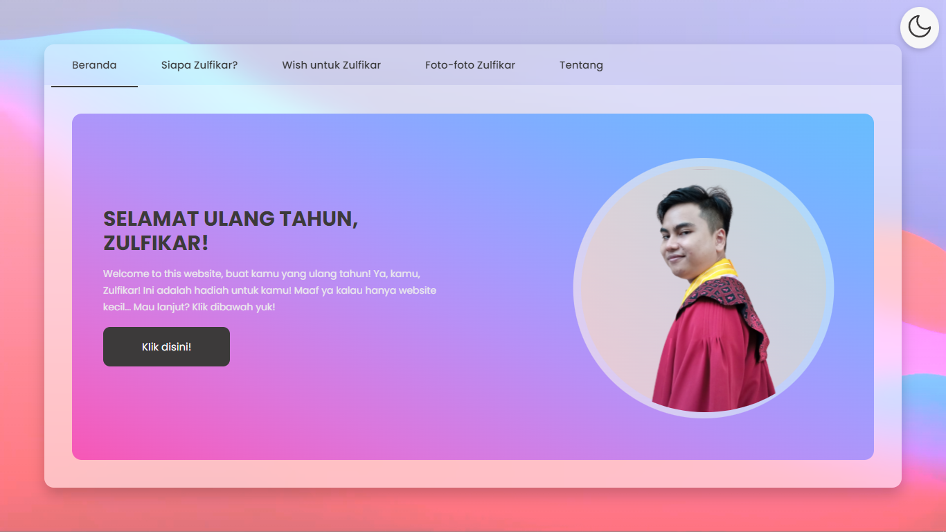 Designed a beautiful birthday website for a client to showcase their birthday details, memories, and photos.